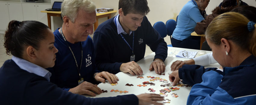 Divididos em grupos, eles montaram quebra-cabeças, numa alusão à necessidade de enxergar a instituição como um todo, a fim de manter o seu bom funcionamento. Os colaboradores ainda foram