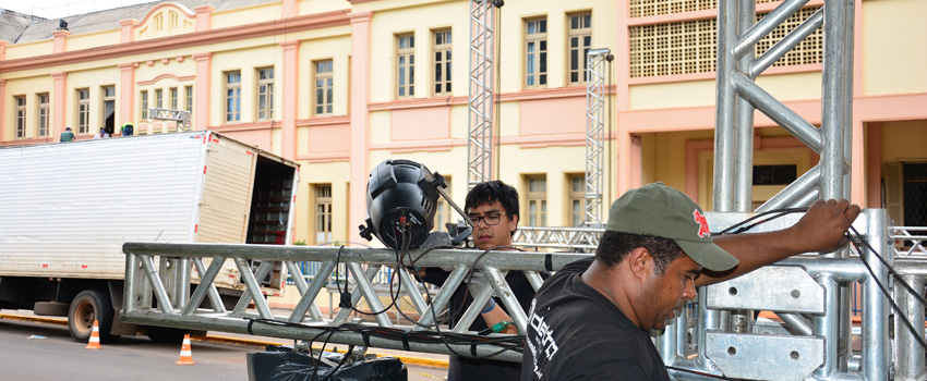 Para que na noite deste sábado (21), um público esperado de mais de 9 mil pessoas possa assistir à apresentação de estreia da nona edição da Cantata Natalina, desde a tarde de terça-feira (17), aproximadamente 25 toneladas de equipamentos de iluminação e de sonorização já estão sendo instaladas, em frente ao Colégio Notre Dame. Saiba mais: