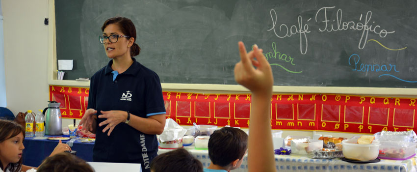 Momentos de integração, de debate e de questionamentos: assim foram os vivenciados pelos estudantes matriculados no 4º Ano do Ensino Fundamental da Escola Notre Dame Menino Jesus, na tarde de terça-feira (08). Na ocasião, eles participaram do Café Filosófico, uma atividade desenvolvida na disciplina de Filosofia, para dar início ao estudo do seu conteúdo programático.