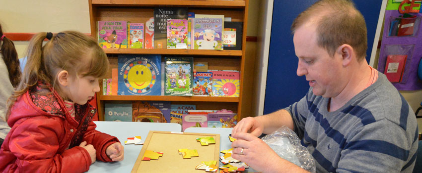 Ao final dos momentos de brincadeiras e integração, as figuras paternas foram presenteadas com porta-retratos, que emolduravam desenhos e mensagens produzidas pelos próprios estudantes, em forma de agradecimento pelo carinho e cuidado a eles dedicados.