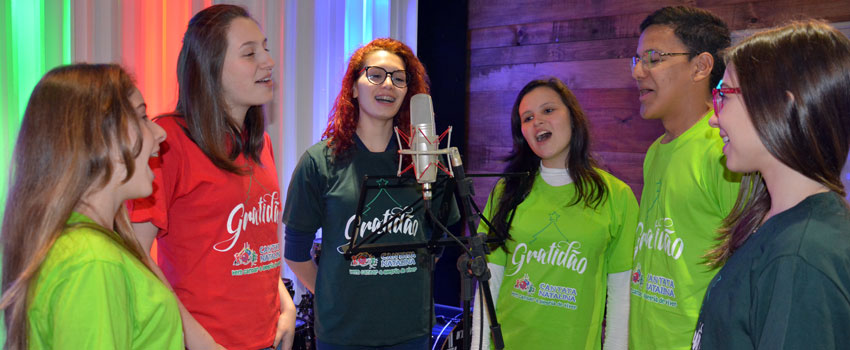 Sob a orientação da coordenadora artística do maior evento natalino do norte gaúcho, Irmã Mirtes Helena Roman, os cantores que dão voz à Cantata Natalina gravaram, durante a última semana, as músicas que vão nortear a décima edição do espetáculo evangelizador. Saiba mais: