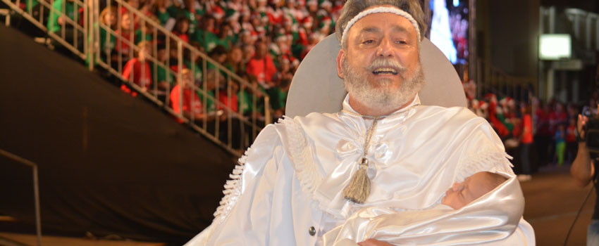 Mesmo que o espetáculo só fosse iniciar à noite, o sol ainda brilhava quando os espectadores começaram a posicionar suas cadeiras em frente aos palcos e arquibancadas montados no passeio. Desse local, voltados para o Colégio Notre Dame, eles teriam uma visão privilegiada da segunda apresentação da Cantata Natalina 2016, realizada no domingo (04).