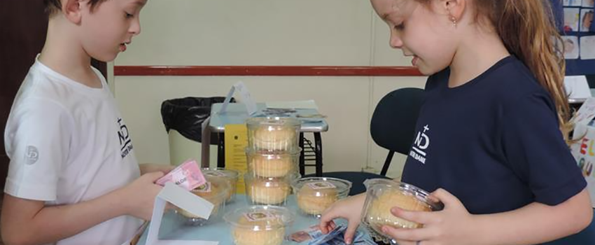 Em um contexto no qual, cada vez mais, o apelo ao consumo é direcionado às crianças, educá-las para que saibam administrar corretamente as finanças se torna fundamental. Por isso, os educandos matriculados no 1º Ano do Ensino Fundamental da Escola Notre Dame Menino Jesus exercitaram conceitos de Matemática Financeira, enquanto simularam um comércio.