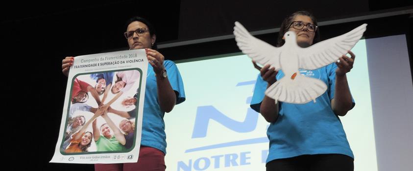 A Campanha da Fraternidade também contextualizou a reflexão proposta aos educandos da Escola Notre Dame Menino Jesus, que, após terem assistido, pela manhã, a show acústico – protagonizado pelos docentes de Música da instituição de ensino – e executado, à tarde, coreografias de Zumba, participaram de momento de espiritualidade.