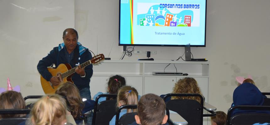 Por isso, os profissionais da estatal reuniram-se com os educandos, no Espaço Multiuso da instituição de ensino, instigando-os a pensar sobre sustentabilidade, por meio da ludicidade de canções.