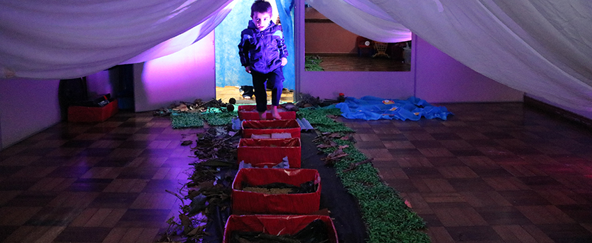 IMG_5672 (Copy)Instalado em sala de aula, ele conta com iluminação especial e trilha sonora que remete ao canto dos pássaros e ao curso d’água – elementos que ambientam o percurso sensorial, composto por caixas onde diferentes itens são armazenados, a fim de que os educandos possam experimentar suas texturas, enquanto conectam-se com a natureza. “É mágico ver a curiosidade que as crianças sentem ao entrar ali”, relata a educadora Ionete Lorini, enfatizando que, como não estão acostumadas a explorar o tato com os pés, algumas estranham e, até, ficam receosas, mas, ao caminhar, encantam-se com a experiência.