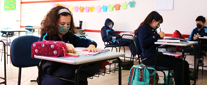 A retomada das atividades presencias segue rigorosamente o Protocolo de Segurança Sanitária da instituição de ensino, que prevê a aferição da temperatura corporal e a higienização dos calçados e dos pertences pessoais, antes do ingresso no educandário.
