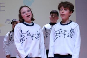 Do palco, de onde podiam observar os olhares atentos dos mais diversos partícipes das comunidades educativas, os estudantes matriculados a partir do 2º Ano do Ensino Fundamental expunham as habilidades desenvolvidas e aprimoradas nos ensaios. Para tanto, cada grupo de Canto Coral lançou mão de quatro composições.