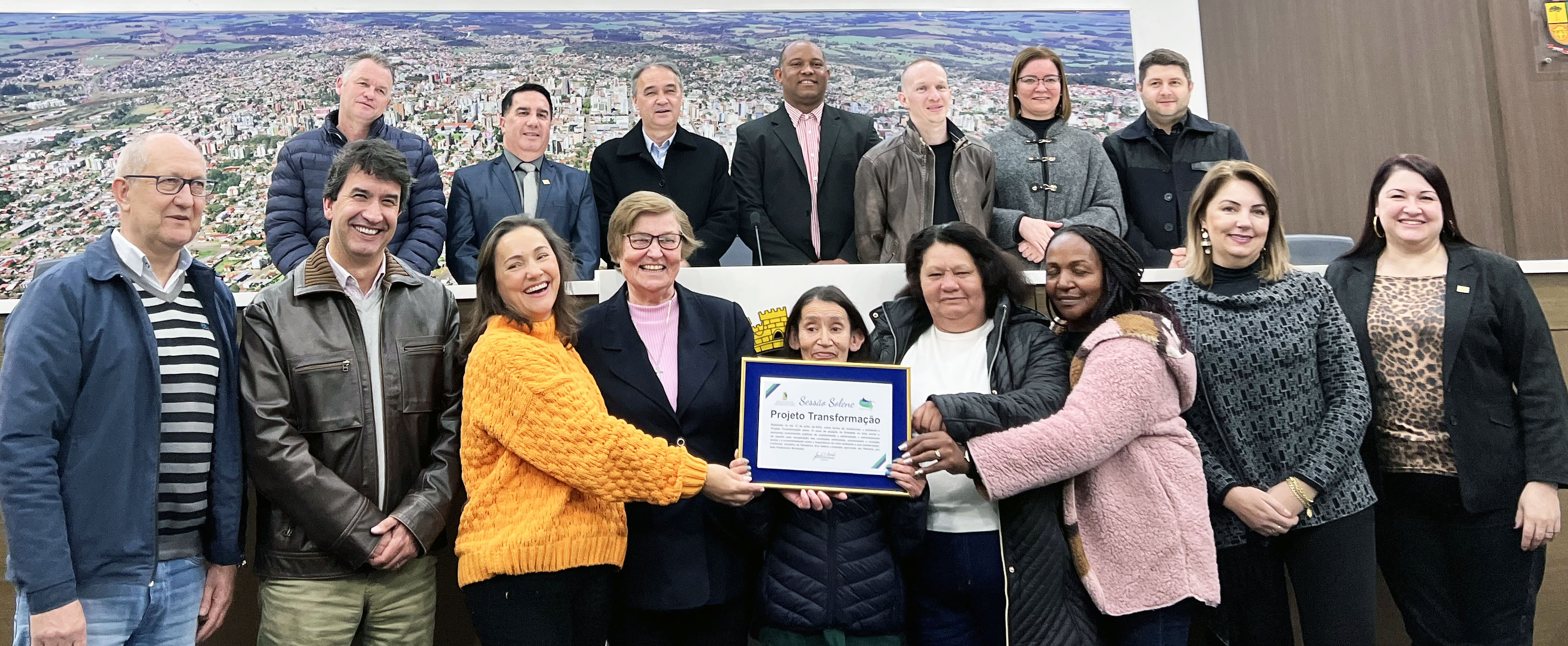 Tamanha relevância motivou a Câmara de Vereadores a convidar representantes das entidades associadas – Cáritas Arquidiocesana de Passo Fundo, Irmãs Franciscanas Missionárias de Maria Auxiliadora, Missionários da Sagrada Família, Congregação de Nossa Senhora e Congregação Missionária Redentorista – a unirem-se aos cooperados da Recibela, Coama e Cootraempo, durante a sessão solene. “Esta é uma singela homenagem a esse Projeto e às pessoas que o integram. Singela porque a grandiosidade do trabalho desenvolvido pelo TransformAção, por cada trabalhadora e trabalhador da reciclagem, por cada voluntária e voluntário, não pode ser mensurada em palavras”, enfatizou a vereadora proponente, Valéria Lorenzato.