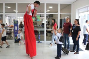 À tarde, por sua vez, a animada recepção ficou a cargo do Grupo de Teatro Ritornelo – cujos atores também delinearam sorrisos nas expressões que, evidenciando nervosismo e, ao mesmo tempo, euforia, eram vistas pelos corredores escolares durante a terça-feira (14).