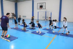 Esporte: proporciona a melhora da coordenação motora e do aprendizado de trabalho em equipe, além da descoberta de novas habilidades, em especial, por meio do futsal e do voleibol.