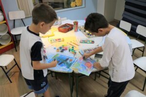 A coordenadora do segmento de ensino, Elisandra Burin dos Santos, explica que a dinâmica de trabalho preza pelo estímulo dos bons hábitos e atitudes, orientando os estudos, a convivência, a higiene correta e a alimentação saudável. Além da rotina diária, a programação do Integral compreende diferentes áreas do conhecimento para o desenvolvimento de habilidades relacionadas à arte, saúde e bem-estar, também às práticas esportivas, atividades recreativas e culturais. Por isso, ao longo da semana, os estudantes matriculados participam de oficinas de música, pintura, funcional kids, jogos eletrônicos, psicomotricidade e esportes.
