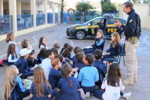 Entre as dinâmicas, eles receberam orientações sobre como utilizar o transporte público, sobre como pedestres e condutores devem agir ao atravessar e trafegar nas vias e, ainda, dicas práticas da PRF.