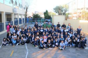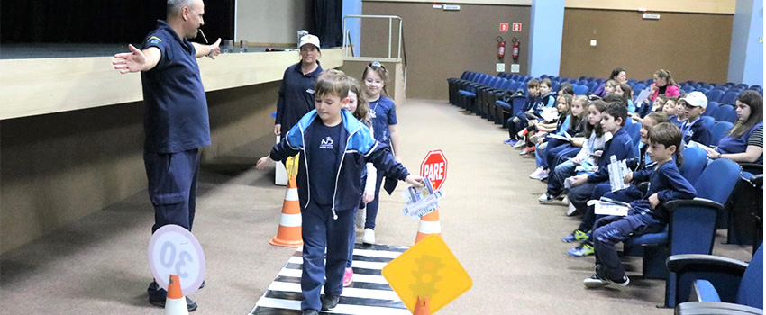 Com o objetivo de promover ações que estimulem a reflexão acerca de um novo olhar para pensar o presente e o futuro da mobilidade urbana, a instituição de ensino oportunizou que as crianças inscritas no 2° Ano do Ensino Fundamental participassem de uma atividade de educação para o trânsito.