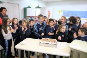 Findando a  programação comemorativa, o amor pelo educandário, que lhes serve de palco à construção de saberes, foi expressado através de um alegre e ritmado canto de “Parabéns”, que reuniu os educandos no pátio escolar. O dia se tornou ainda mais animado à medida que a comunidade educativa recebia um lanche festivo, o tradicional pão com linguiça, para confraternizar desejando os mais sinceros votos de longevidade à trajetória edificada.