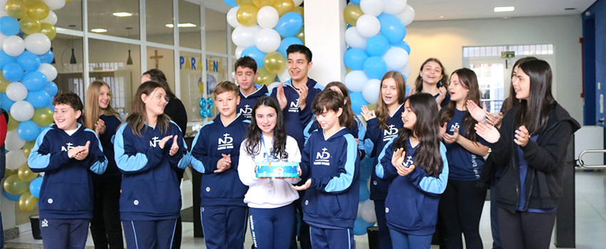 Os últimos dias do mês de junho foram festivos na Escola Notre Dame Menino Jesus. Isso porque, a instituição de ensino completou 82 anos e, para celebrar o aniversário, estudantes e seus responsáveis, além de educadores, colaboradores e religiosas participaram de diversas atividades, comemorando de maneira intensa e simbólica no primeiro sábado de julho.