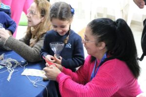 Os que integram as turmas do Maternal, por exemplo, uniram suas pequeninas mãos às dos avós para confeccionar um “bilboquê” – brinquedo que, certamente, habita algumas das mais ternas memórias de infância dos homenageados.