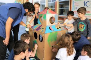Eles ainda participaram de uma oficina de produção de brinquedos, como aviões, catapultas, piões e foguete, a qual foi orientada por facilitadores da “Missão Criativa” – organização voltada à promoção da cultura maker entre as crianças.