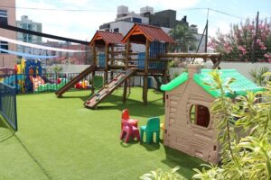 O Parque Infantil, ampliado e revitalizado, agora dispõe de área verde e novos elementos lúdicos. Desse modo, possibilita a proposição de atividades com intencionalidades pedagógicas variadas aos educandos matriculados, sobretudo, no Maternal e na Pré-escola.