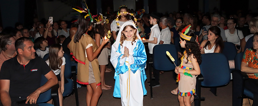 Os inscritos no 3° Ano do Ensino Fundamental I, por exemplo, protagonizaram uma apresentação artística, baseada no projeto pedagógico “Bia na Europa”. Os educandos demonstraram, através de músicas e interpretações, os saberes que, impulsionados pelo estudo sobre a cidade de Passo Fundo, os instigaram à investigação de diferentes culturas, etnias e religiões que colonizaram o município e o Rio Grande do Sul. Ainda, ao simbolizar a devoção religiosa da população, com a representação de Nossa Senhora da Conceição, pad