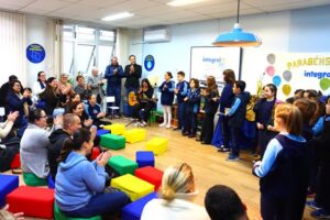 Tendo seus familiares na plateia, as crianças apresentaram canções e recitaram um poema em Língua Espanhola. Além disso, ritmaram aos aplausos suas felicitações para o educandário e foram presenteadas com lancheiras personalizadas do Integral Notre Dame.