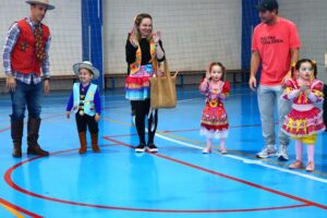 Já no ginásio de esportes, a alegria manifestou-se em coreografias reproduzidas por educandos e familiares. Foi visando à construção de memórias afetivas que, durante a Quadrilha das Famílias, os responsáveis foram convidados a somarem-se às crianças e aos educadores, em um resgate das tradições que se concretizou como um momento de fortalecimento dos laços comunitários.