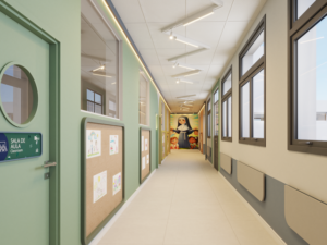 A revitalização, idealizada e supervisionada pelo escritório B+M Arquitetura, contempla sala de espera, secretaria e tesouraria, assim como novos escritórios e salas de reuniões. Ela prevê, igualmente, a modernização dos corredores que conduzem às salas de aula da Educação Infantil, os quais se tornarão mais atrativos, instigantes e iluminados, bem como dos diferentes banheiros localizados no andar.