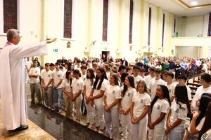 Demonstrando esperança e gratidão, os concluintes do Ensino Fundamental louvaram a Deus pela sua trajetória acadêmica ao passo que celebravam o encerramento da etapa de ensino. Reunidos na Paróquia Santa Teresinha, na noite de 16 de dezembro, os estudantes protagonizaram os ritos litúrgicos da Santa Missa, rendendo graças pelo dom da vida e pela educação recebida na Escola Notre Dame Menino Jesus.